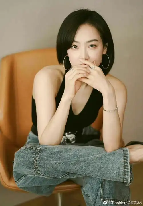 宋茜#7015活动新物料,短发造型搭配牛仔长裤,辣妹造型的宋茜美到