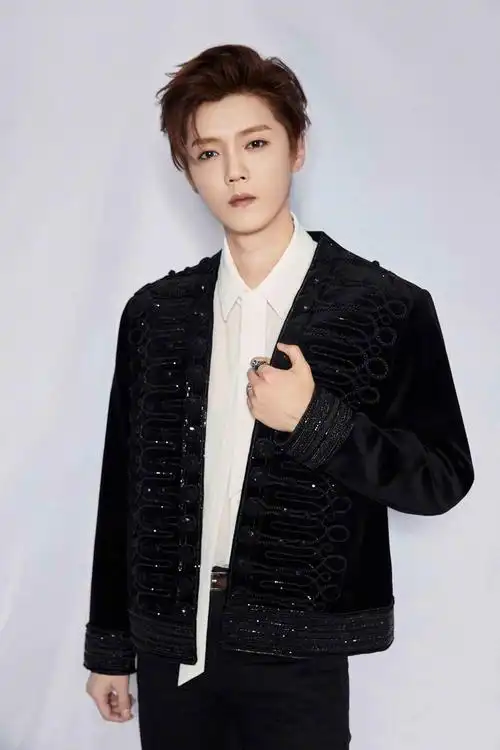 男艺人鹿晗黑色西装帅气活动写真