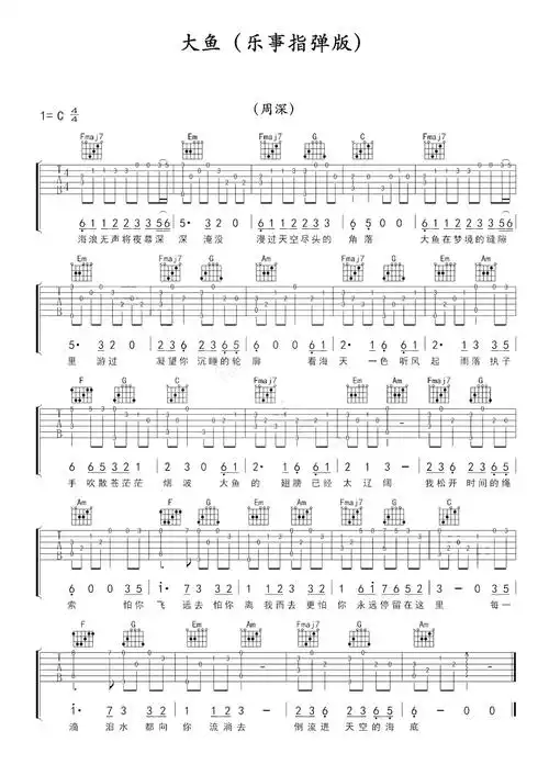 周深大鱼吉他谱c调吉他独奏谱