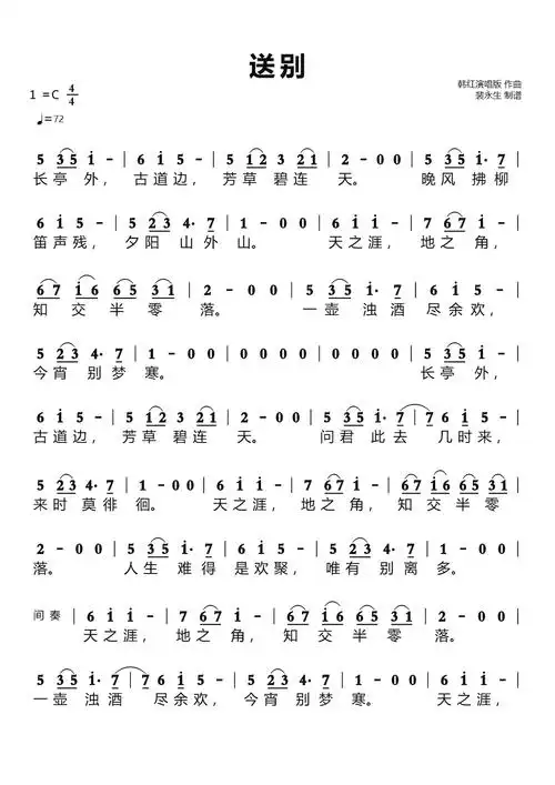 送别(老人适用)_还不错个人制谱园地_中国曲谱网