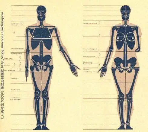 上面是人体骨骼通常的画法,但是男女骨骼之间存在一些决定性差异,来