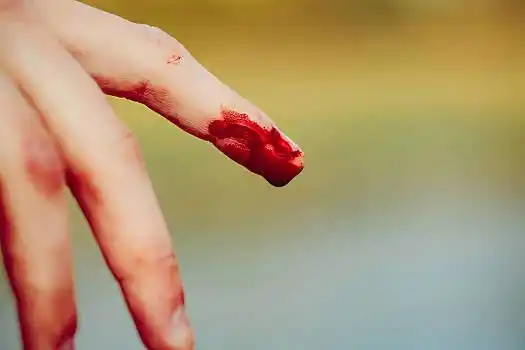 血,人,手指,手,手掌,伤口,受伤,出血,鲜明,红色,户外,模糊,散焦,绿色