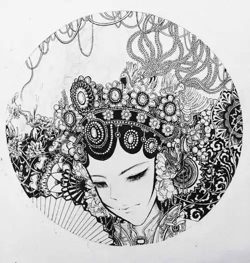 黑白线稿 黑白 线描插画 戏剧 花旦