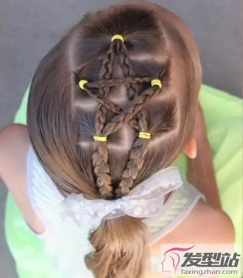 这款五角星扎发很适合小女孩,乍看就很吸睛,将几缕头发编织成辫子并