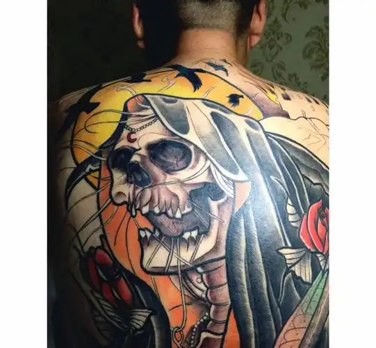 死神上身纹身图片_背部old schoolnew school纹身图案