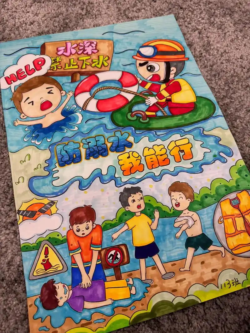 防溺水安全教育绘画作品#快乐学习快乐成长