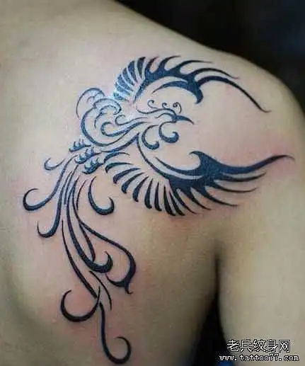 后背凤凰图腾纹身图案