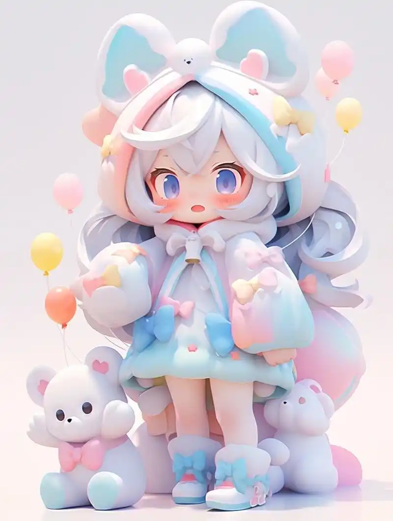ai盲盒 关键词:女孩,可爱,卡哇伊,柔和的颜色,卡通,彩色,可爱,俏皮,有
