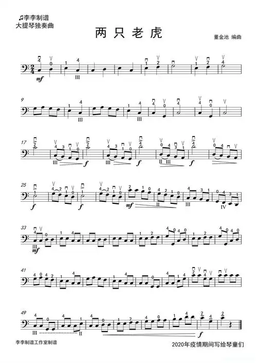 两只老虎(大提琴独奏)简谱歌词