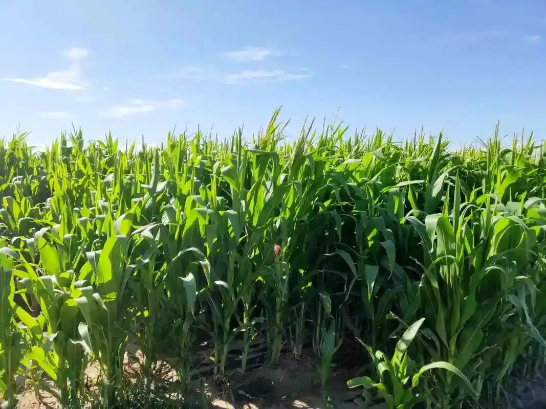 大片大片的玉米地,杆子上的玉米粒都长饱满了.