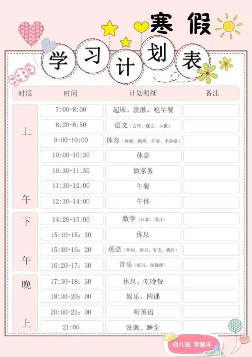 寒假学习生活计划表 - 美篇