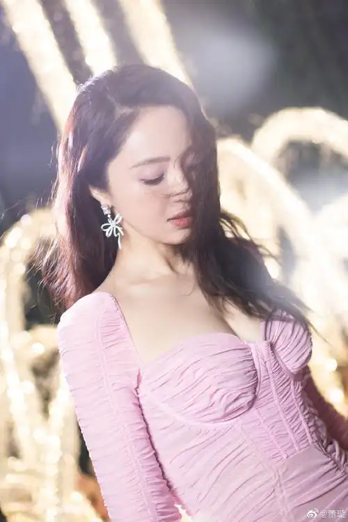 董璇一袭深v黑裙拍大片妩媚卷发娇嫩红唇气质优雅