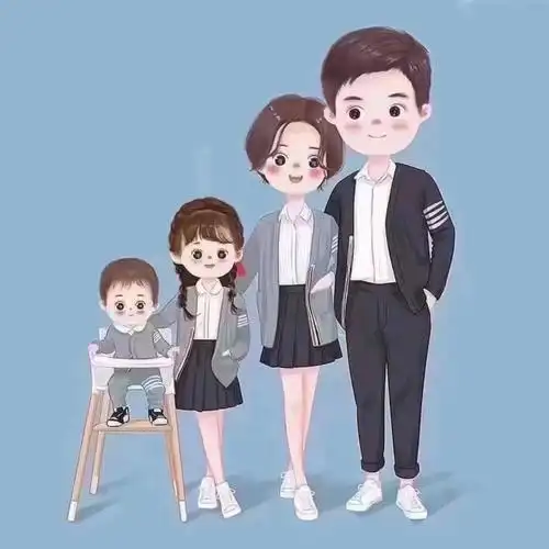 漫画全家福,简单温馨的家庭头像,甜蜜幸福的手绘图片