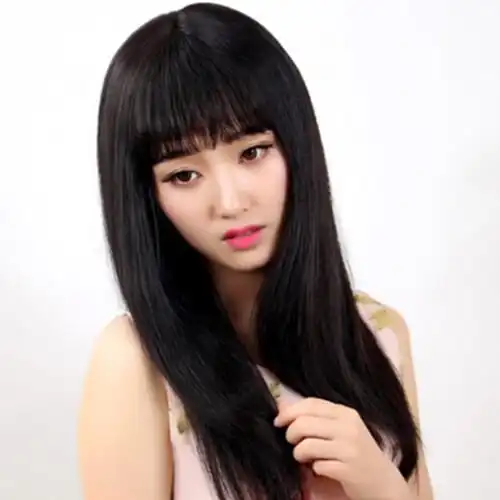 韩国假发女空气刘海长直发薄长发直发齐刘海黑色逼真微卷梨花发型