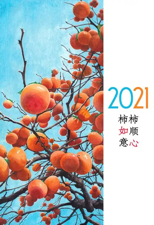 2020水彩画收官之作の2021柿柿如意柿柿顺心