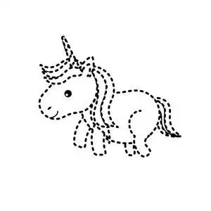 虚线形状,漂亮的独角兽,喇叭和发型设计矢量插图照片