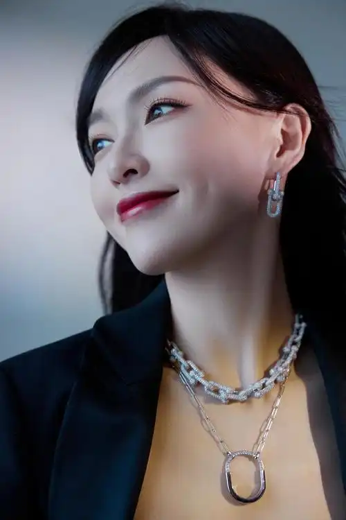 唐嫣身着一件黑色西装,优雅而神秘,仿佛黑夜中的一颗璀璨星辰.