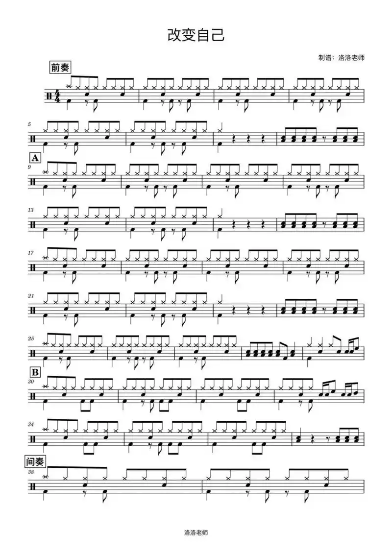 架子鼓鼓谱《改变自己》免费分享 国庆没有假期的人是不是只有我一个?