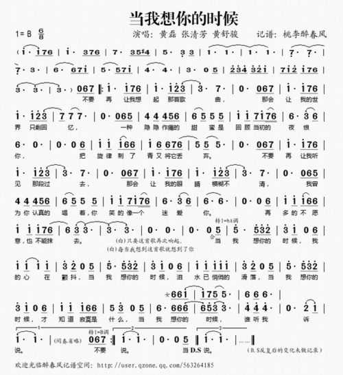 "当我想你的时候"的歌谱