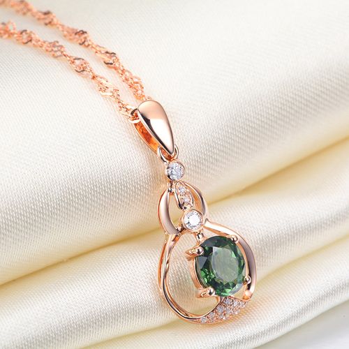 圣德宝18k玫瑰金镶嵌绿碧玺钻石吊坠女款碧玺吊坠项链