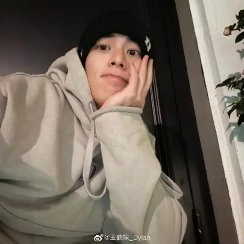 王鹤棣晒比耶自拍三宫格##王鹤棣灰卫衣冷帽造型自拍