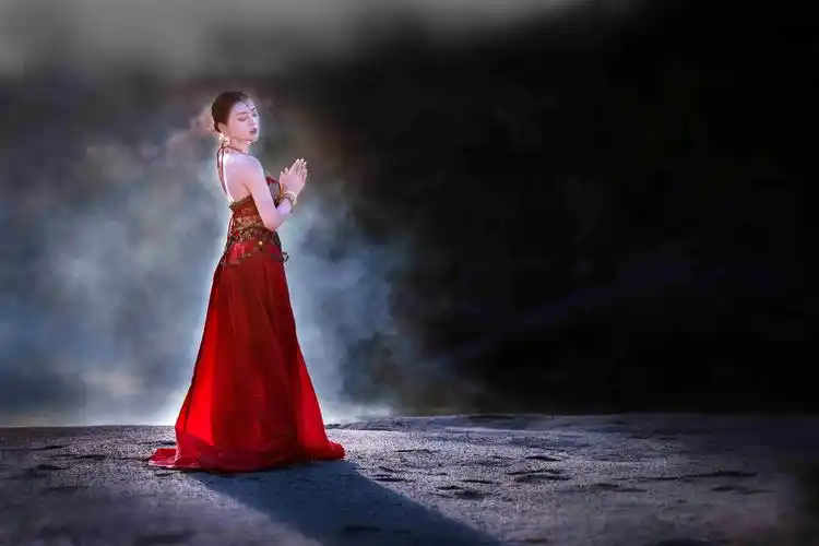 前中国女足门将赵丽娜化身西域美人,拍摄了一组西域风情的红裳写真