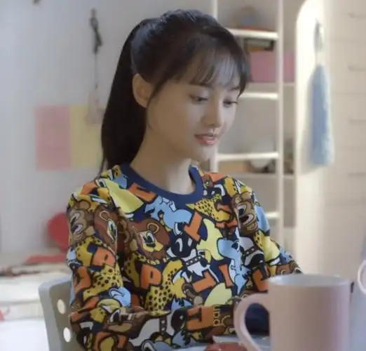 微微一笑很倾城郑爽贝微微明星同款圆领套头短款宽松印花女装卫衣