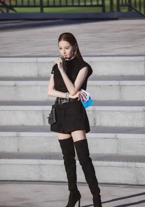 迪丽热巴太绝了腿细得高跟靴都要撑不住了裤带上挂小包a爆了