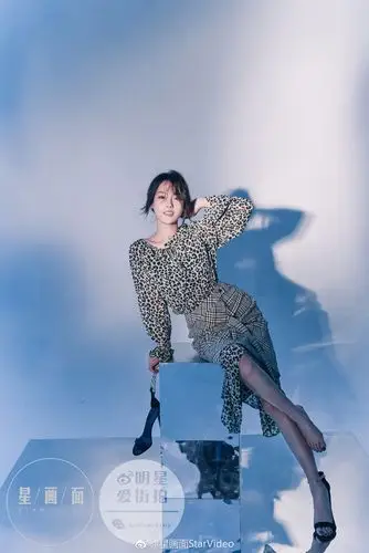 就张嘉倪的这个造型来看,她穿着一条黑色碎花裙,光着脚丫走在沙滩上