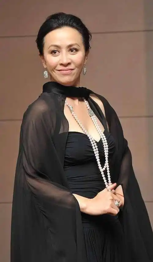 原创刘嘉玲年龄越大穿得越少了一身低身材黑裙系着薄纱披肩真是时尚
