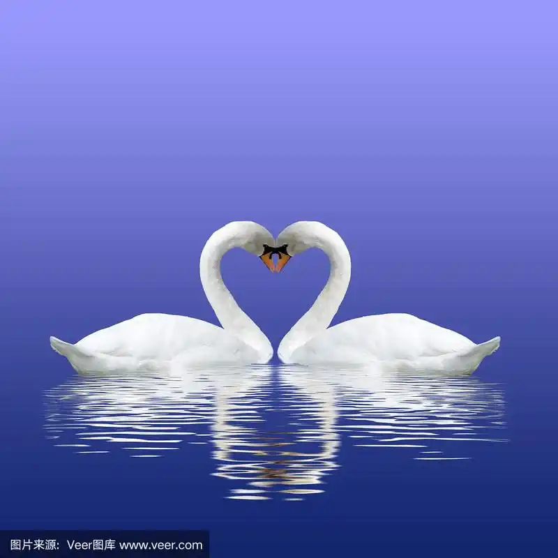 两只天鹅在水的背景上