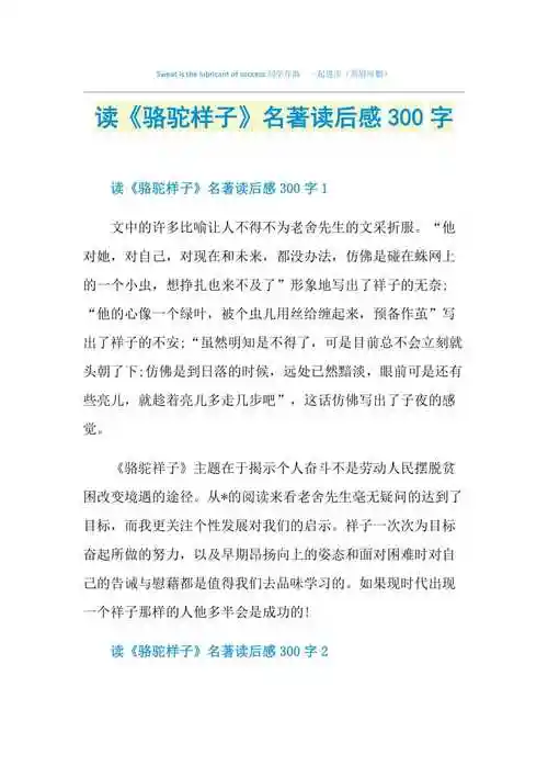 读骆驼样子名著读后感300字doc