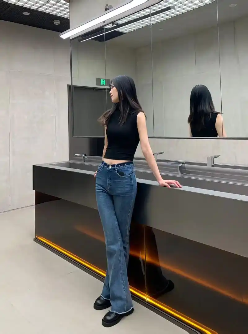 我有一颗甜妹心 可身高偏偏一米七.#微喇裤 #大长腿#背影杀 - 抖音