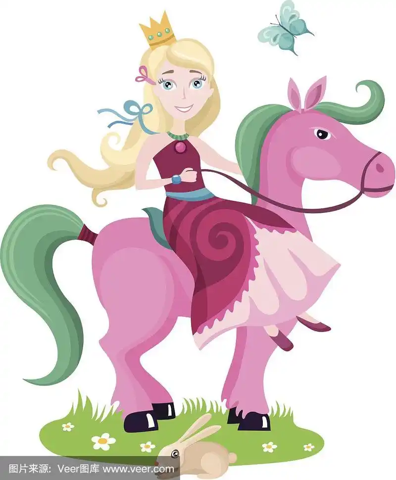 一位年轻的公主骑着一匹粉红色的马