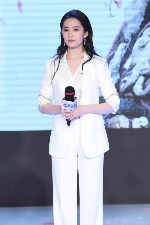 刘亦菲一身白色西装干练中不失温柔优雅