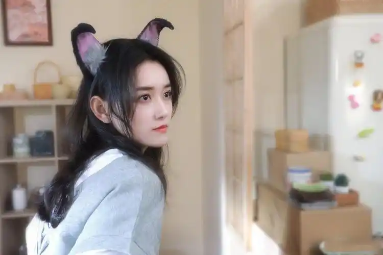 1 / 6 蒋依依最新美照释出,身着灰色休闲t恤加上可爱头饰点缀,活力