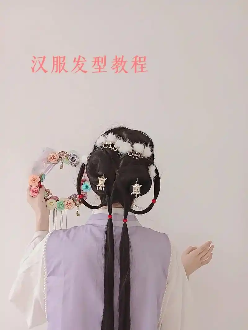汉服发型教程/ "谁家的鸟儿成双对,蝴蝶翩翩飞~" 很豆蔻少 - 抖音