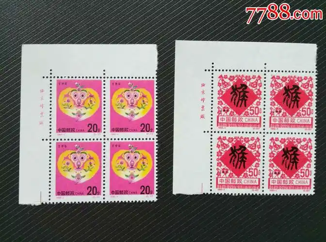 邮票实物图,1992-1二轮生肖猴左上角厂铭方连