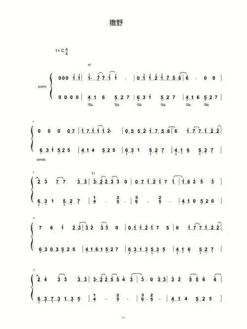 撒野-同名小说撒野同人歌曲-钢琴谱文件(五线谱,双手简谱,数字谱,midi