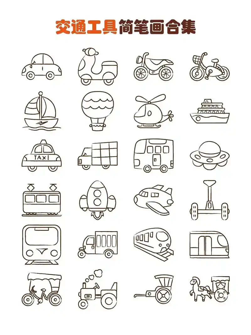 一组交通工具简笔画,学起来