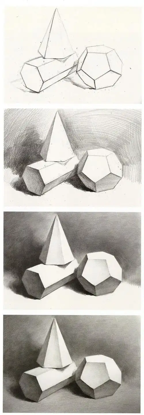 几何体六棱柱六棱锥十二面体组合明暗写实素描步骤教程