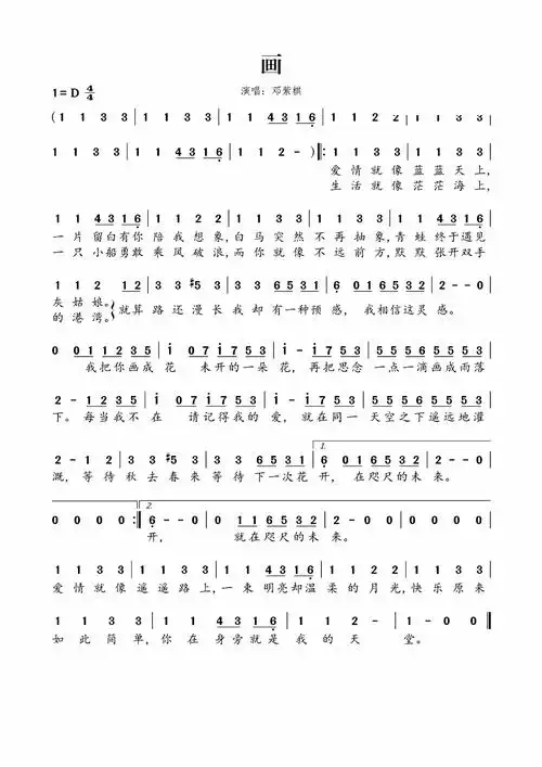 画的简谱邓紫棋_画钢琴谱邓紫棋简谱