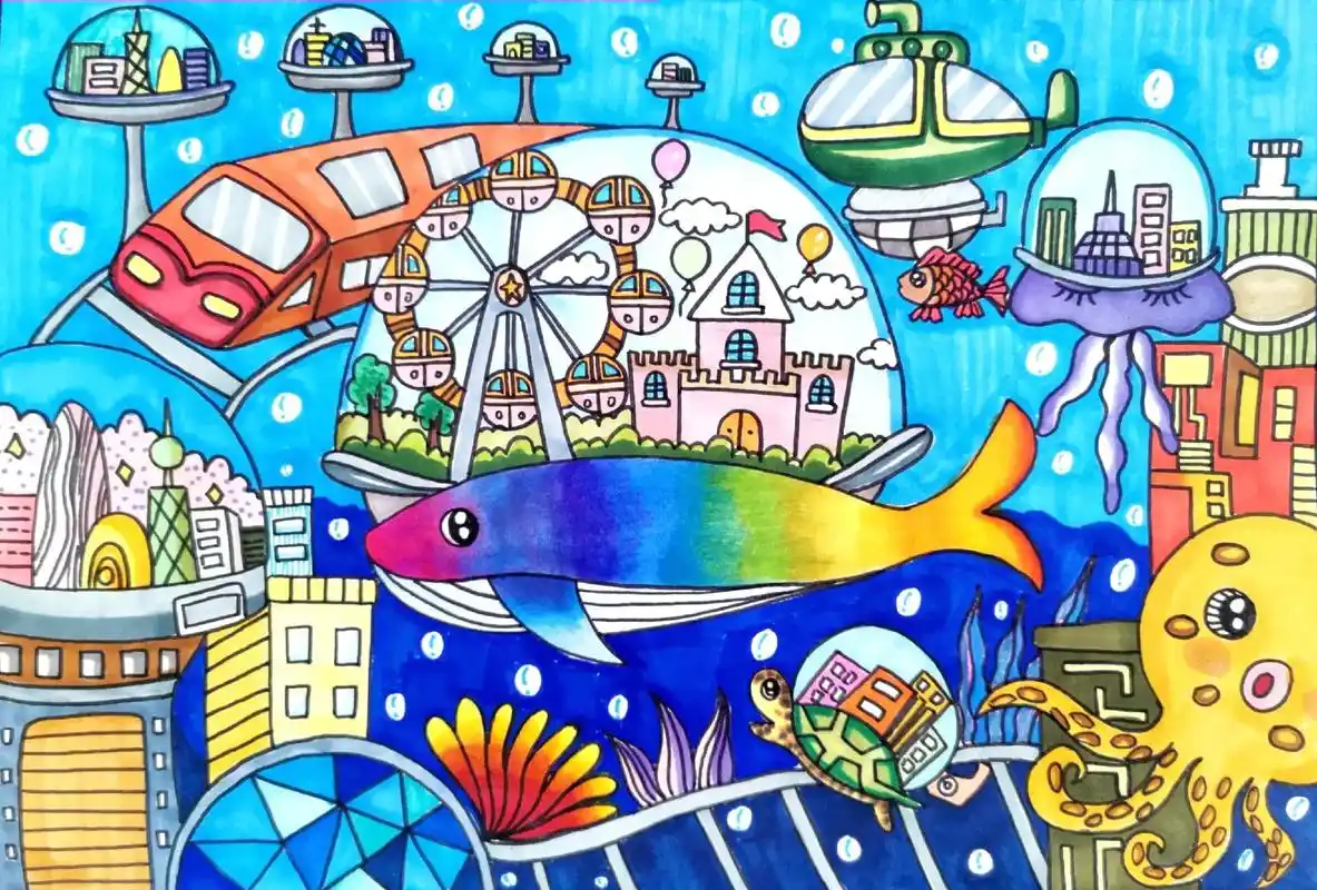 海洋主题画,海底科幻画#手绘 #抖音图文 #科幻 - 抖音
