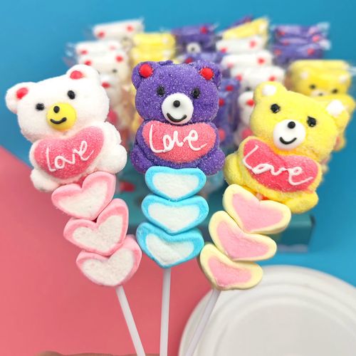 30支爱心棒棒糖卡通棉花糖创意可爱熊软糖网红摆地摊糖六一儿童节