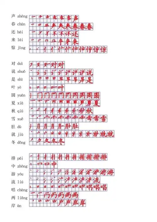 生字笔顺 识字卡片打印 幼儿描红一年级字表158字 汉字基本笔画写法