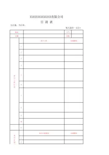 每日工作日清表格式