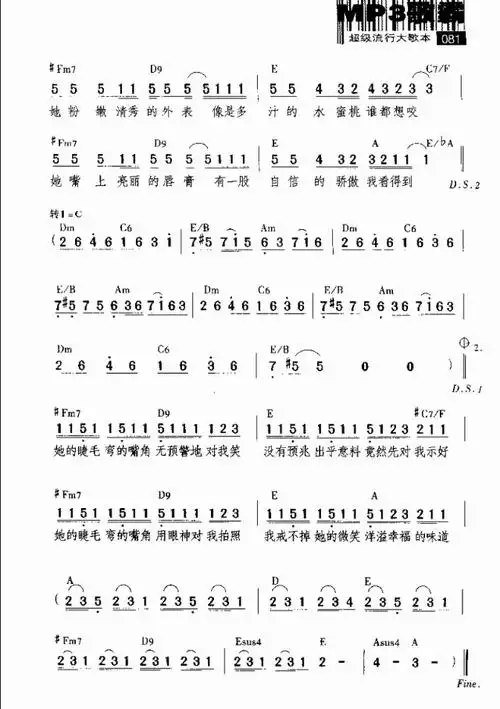 她的睫毛 周杰伦 歌谱,吉他谱 和弦谱,简谱