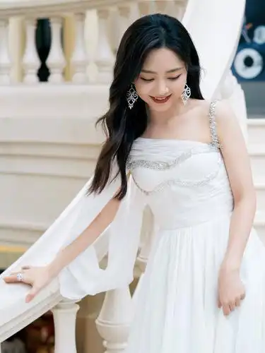 谭松韵黑发披肩一袭白裙 低眉浅笑温柔优雅超美丽