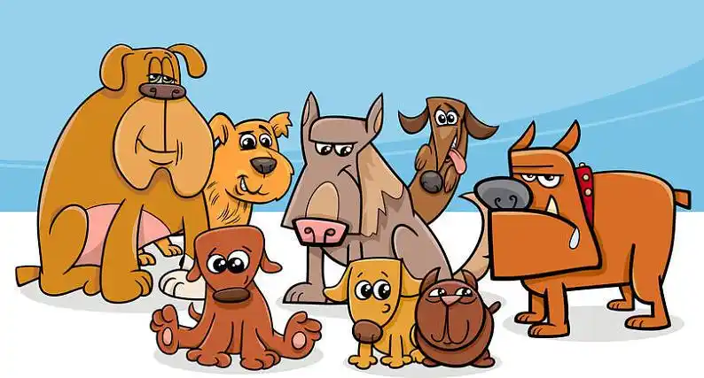 卡通手绘站立的一群狗狗
