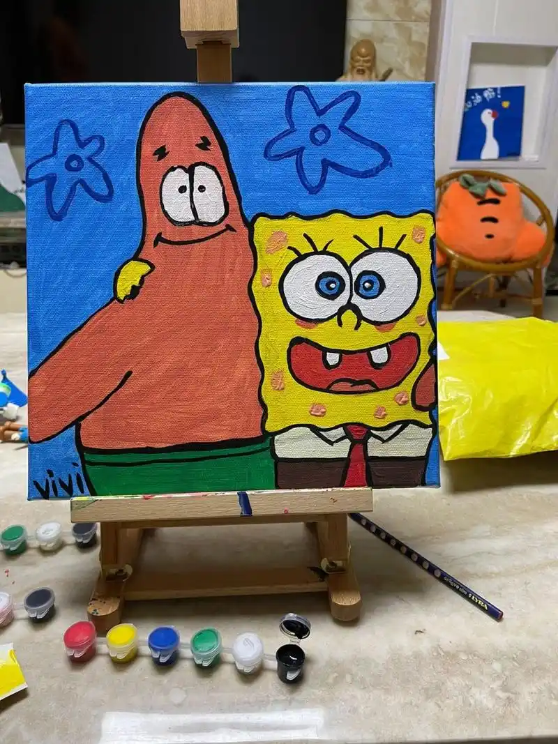 简易丙烯画,入门级丙烯画教程 7315海绵宝宝与派大星~ 最近爱上了